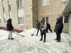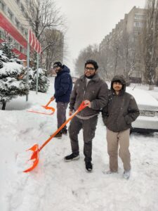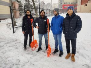 The heavy snowfall had created serious challenges: sidewalks were buried, movement became unsafe, and municipal services were overwhelmed. In response, KSMU’s international students decided to take action and contribute to the community.