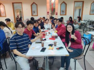 The most memorable and extraordinary moment was an unusual culinary Chinese tradition involving the tossing of a sweet salad made of fresh cabbage, juicy carrots, crunchy cucumbers, fragrant mandarin slices, and croutons using chopsticks. The participants’ task was to lift a portion of the salad as high as possible with their chopsticks. Everyone shared laughter and applauded one another!